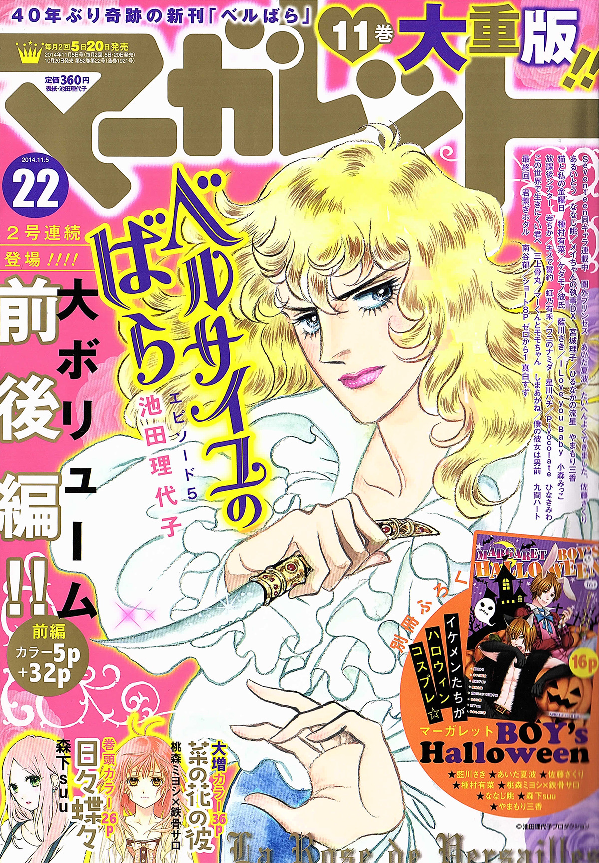 マーガレット 22号に「ベルサイユのばら エピソード5(前編)」が掲載されます。